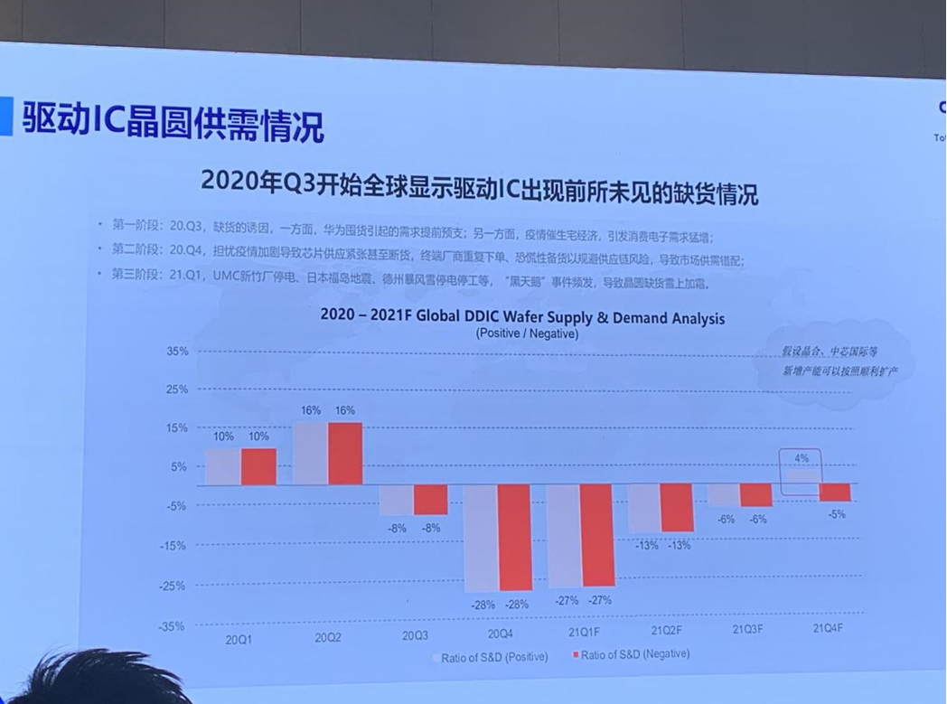 其次,耿俊成總經(jīng)理對驅(qū)動IC晶圓的供需情況進(jìn)行了分析。他認(rèn)為,2020年三季度開始全球顯示驅(qū)動IC出現(xiàn)了缺貨情況,本次缺貨到目前可以分為三個(gè)階段。第一階段是2020年三季度,缺貨初現(xiàn)端倪。第二個(gè)階段是2020年四季度,恐慌性備貨以規(guī)避供應(yīng)鏈風(fēng)險(xiǎn),導(dǎo)致市場供需錯(cuò)配。第三階段是2021年一季度,UMC新竹廠停電、日本福島地震、德州暴風(fēng)雪停電停工等黑天鵝事件導(dǎo)致晶圓缺貨加劇。