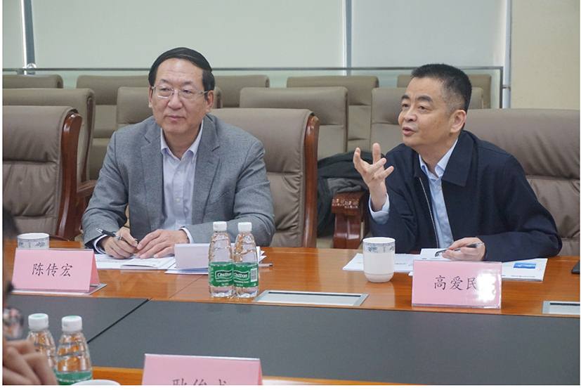 圖二 張晉芳博士為陳傳宏主任一行介紹集創(chuàng)北方創(chuàng)新成果