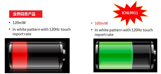 通過自有的低功耗架構(gòu)設(shè)計(jì),ICNL9911具有智能SD/GIP EQ功能,能夠?qū)崿F(xiàn)動(dòng)態(tài)SD驅(qū)動(dòng)控制,對(duì)各模塊實(shí)現(xiàn)精細(xì)功耗管理,并在各種功耗模式下內(nèi)置多種靈活的配置可供選擇。在相同工作模式下,與業(yè)界同類產(chǎn)品相比,功耗顯著降低。