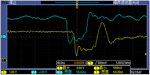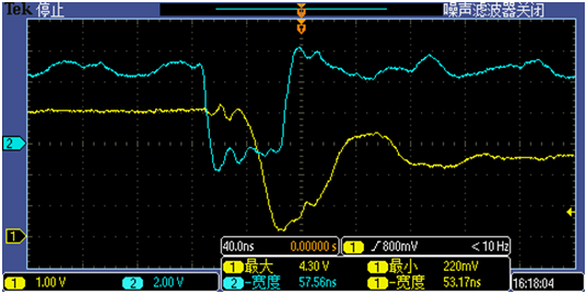 通過給相同脈寬的56nsOE信號,對比打開波形: