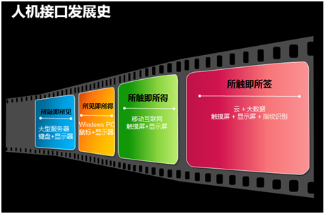 人機(jī)接口經(jīng)歷了大型服務(wù)器時(shí)代、Windows PC時(shí)代、移動(dòng)互聯(lián)網(wǎng)時(shí)代,如今正在向云計(jì)算和大數(shù)據(jù)時(shí)代邁進(jìn)。在這一時(shí)代,伴隨著觸摸屏、顯示屏的技術(shù)創(chuàng)新,更加大膽的創(chuàng)新精神正在被喚醒。由于繁瑣的密碼以及額外的智能設(shè)備難以滿足用戶對(duì)于易操作和高安全性的要求,因此,以指紋識(shí)別為代表的生物識(shí)別技術(shù)大行其道。目前,一些千元左右的手機(jī)已經(jīng)配置了指紋識(shí)別模塊,未來(lái),隨著物聯(lián)網(wǎng)的逐步推進(jìn),指紋識(shí)別將有更廣闊的應(yīng)用空間。